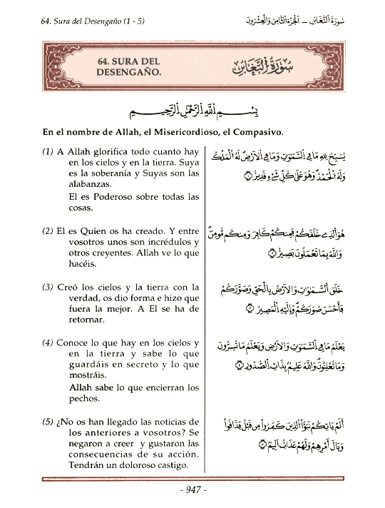 Quran Chapter 64. Surah At-Taghâbun سورة التغابن